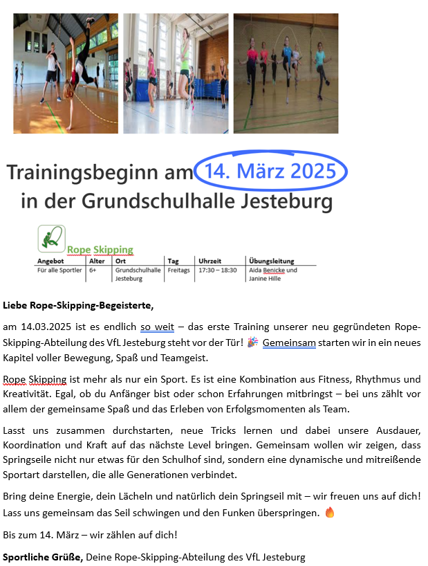 Spring mit – Rope Skipping ab 14 März in Jesteburg