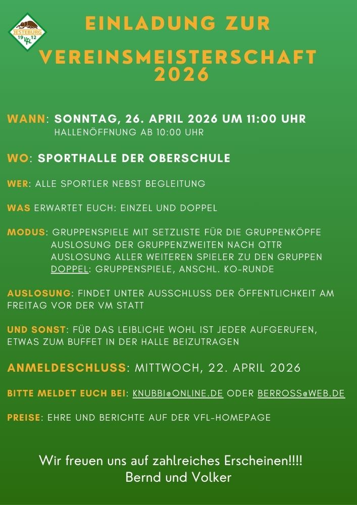 Einladung zur Tischtennis Vereinsmeisterschaft 2026