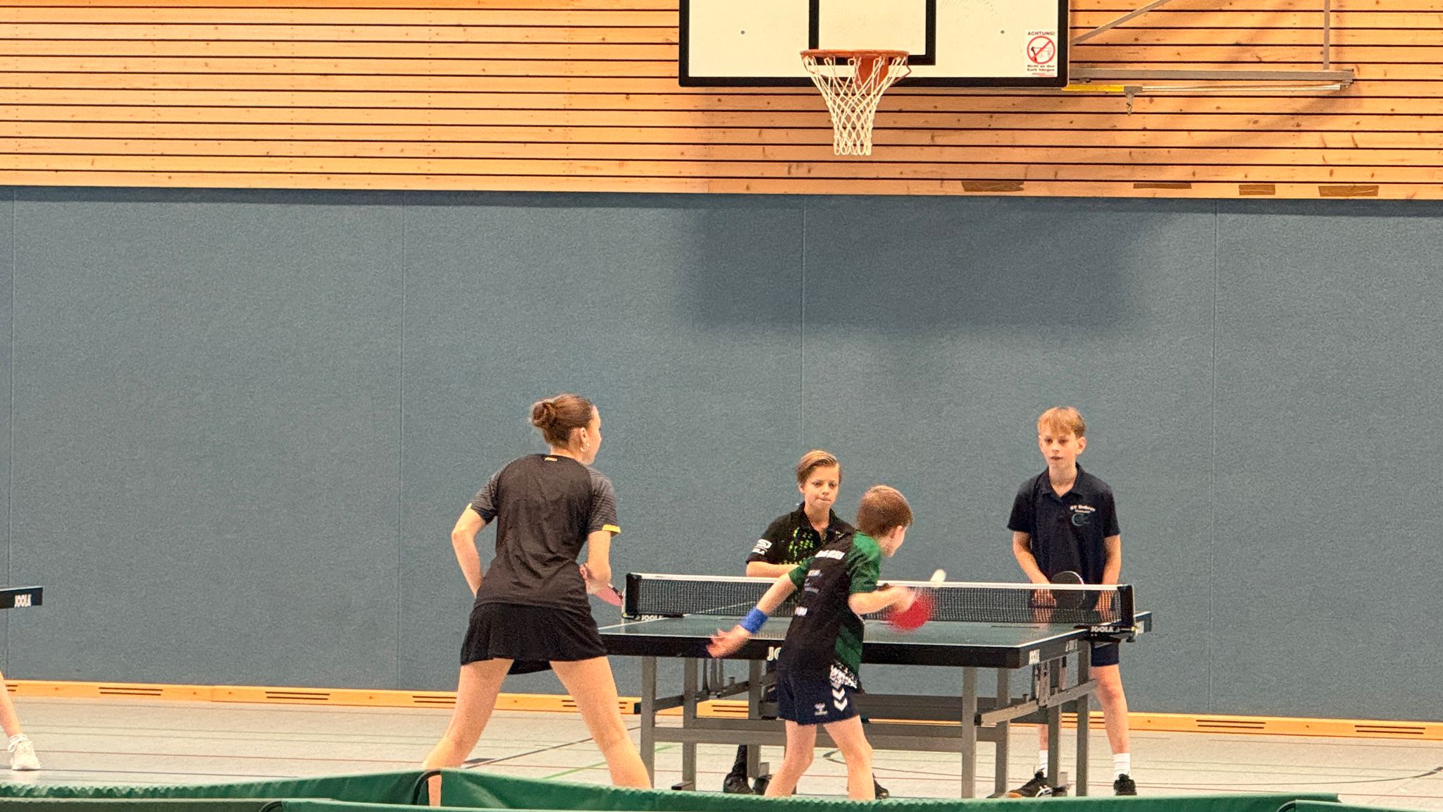 Nur ein Spiel ging mit 3:0-Sätzen zu Ende. Alle anderenPartien benötigten 4 bzw. 5 Sätze. Im Viertelfinale war es besonders eng. Dreider vier Spiele endeten erst im Entscheidungssatz. Das Halbfinale war dannschon deutlicher. Sandra und Christian besiegten Enzo und Andreas in vierSätzen. Jens und Lennard setzten sich in drei Sätzen gegen Bora und Minnedurch. Das Finale holten sich Sandra und Christian, wobei sie einen Satz in derVerlängerung abgaben.